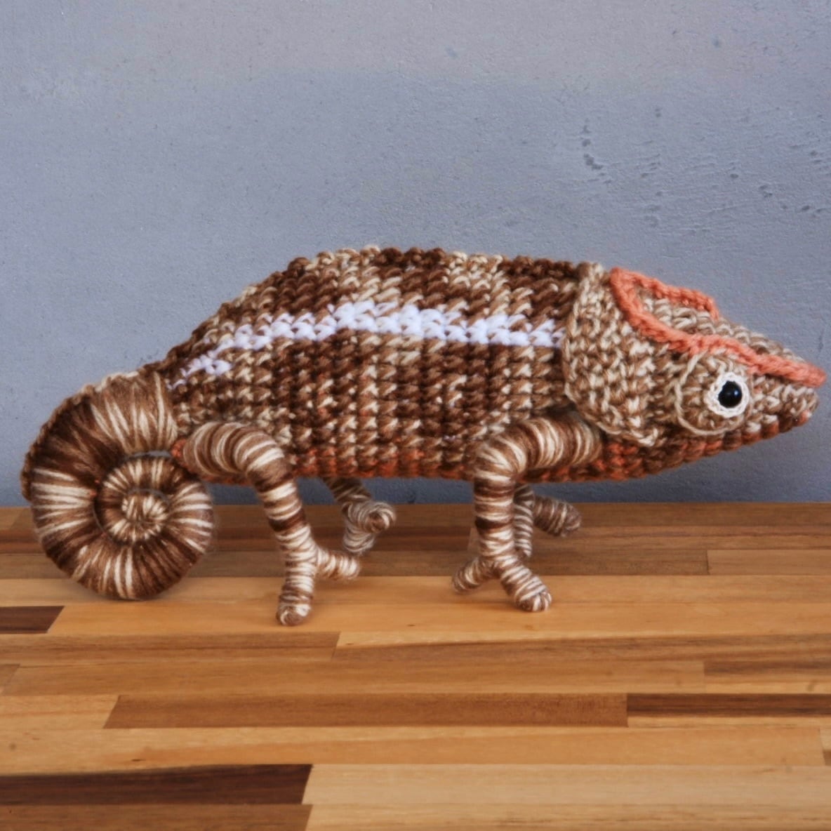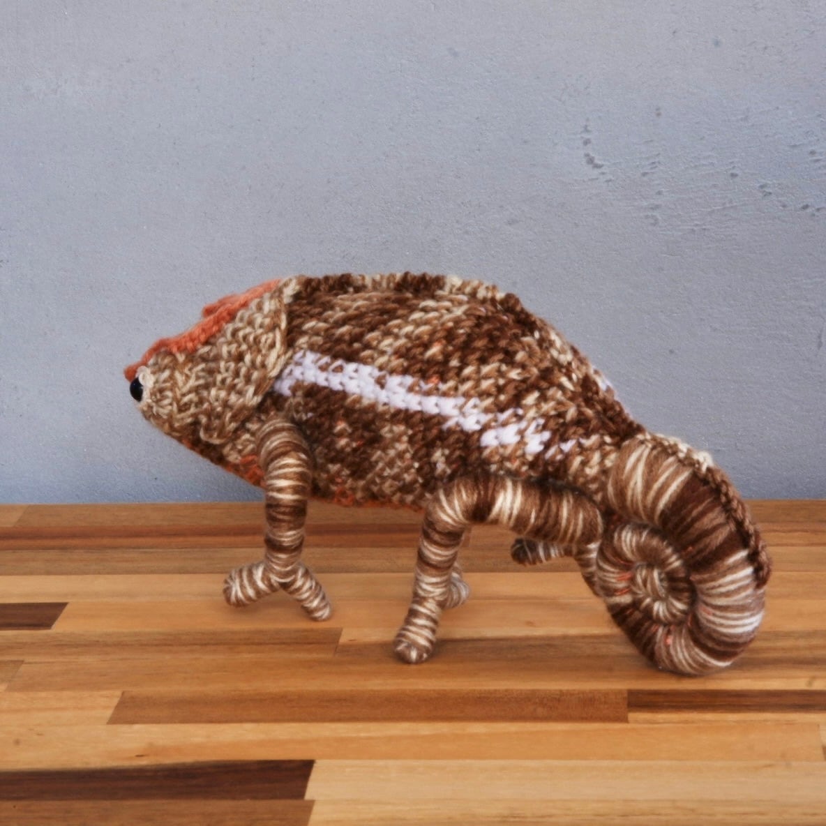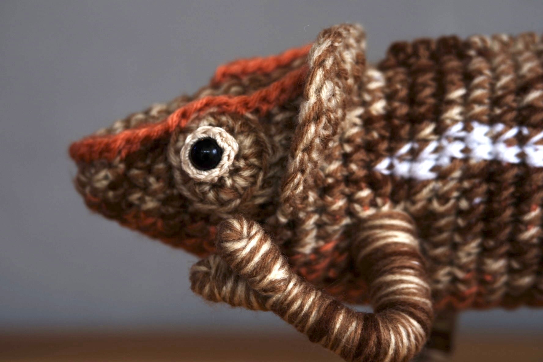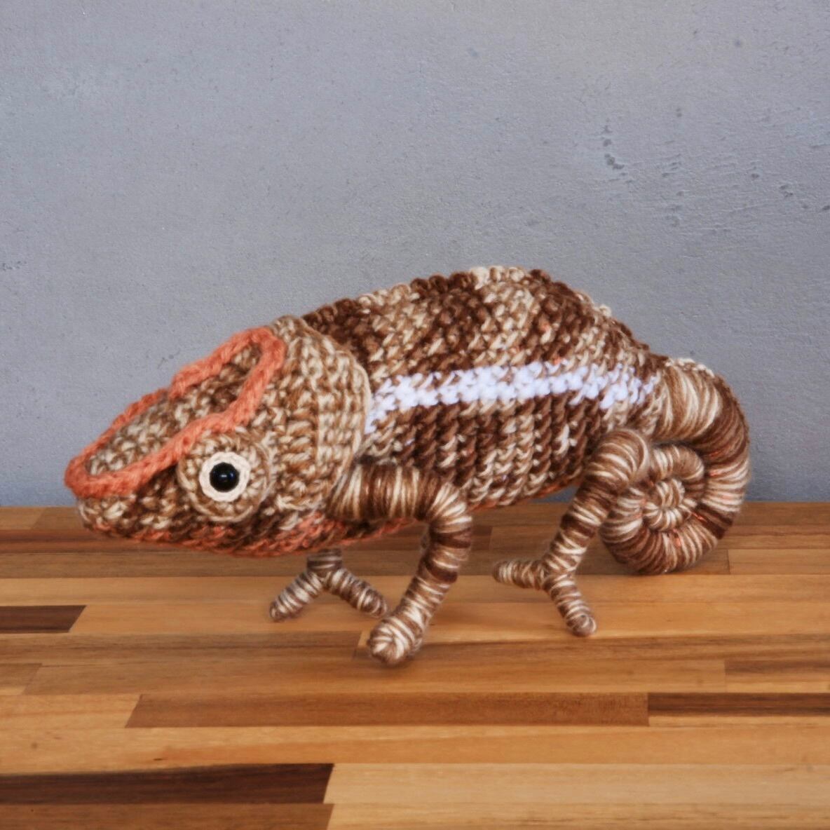 ショートホーンカメレオン♀Calumma brebicorneのあみぐるみです。