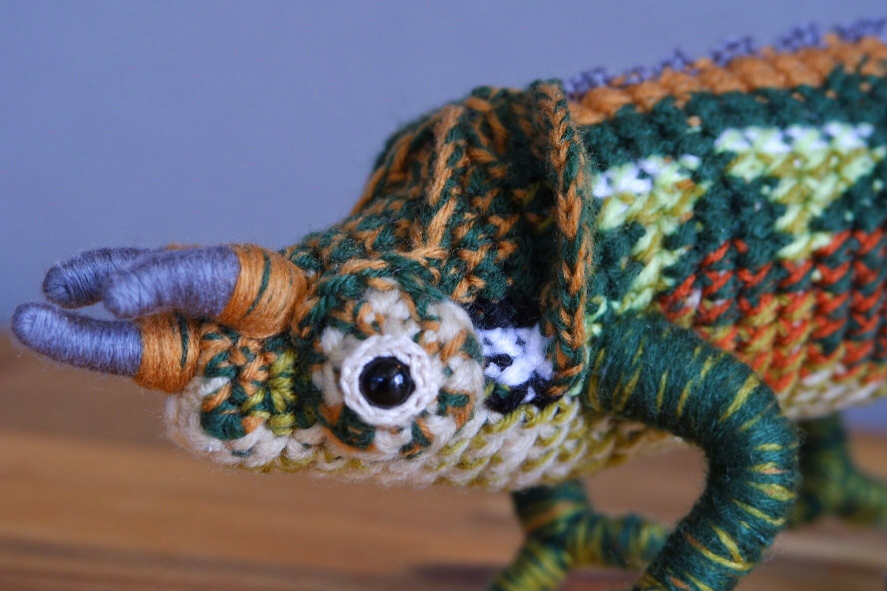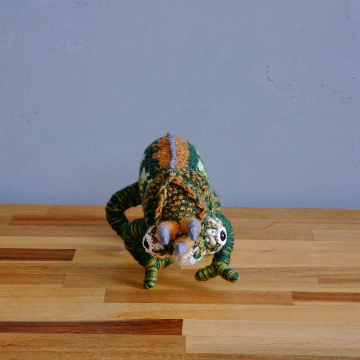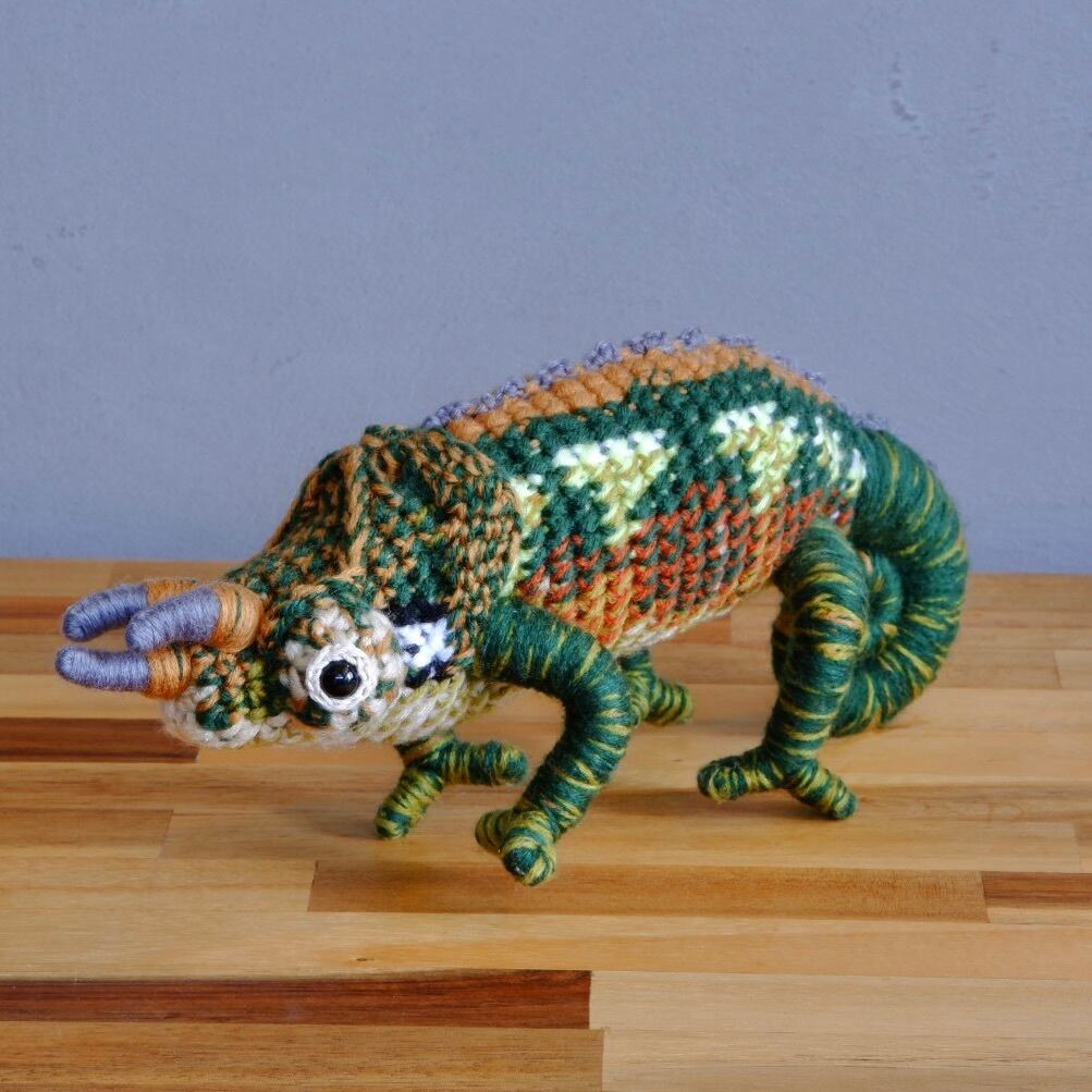 ワーナーカメレオン♂ Trioceros werneriのあみぐるみです。