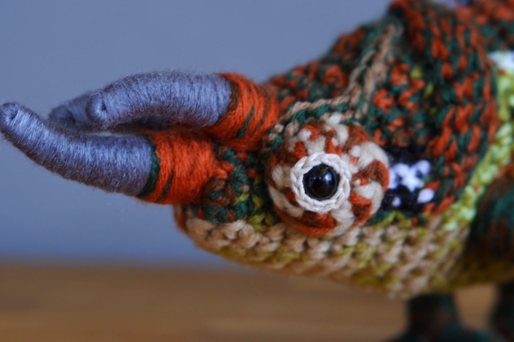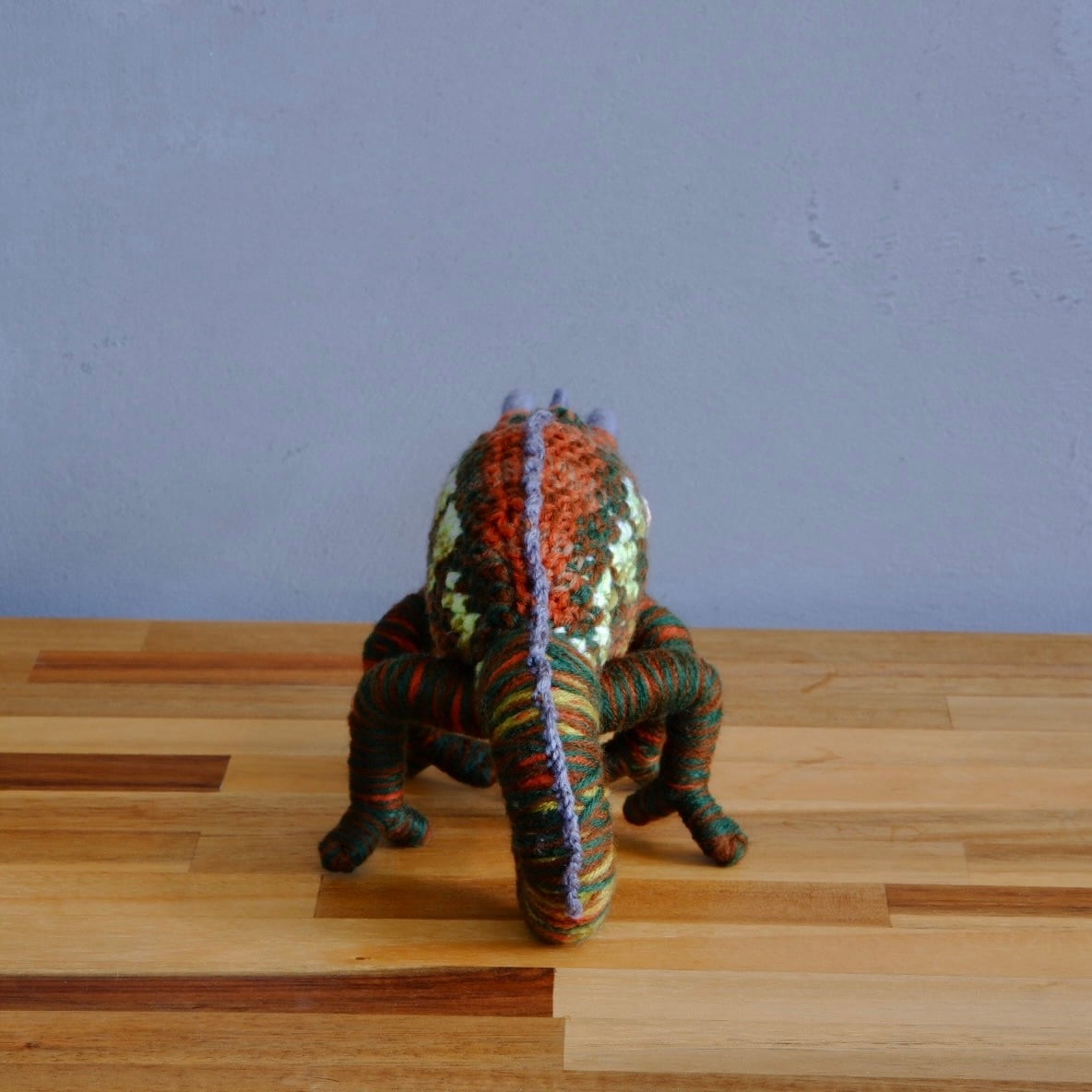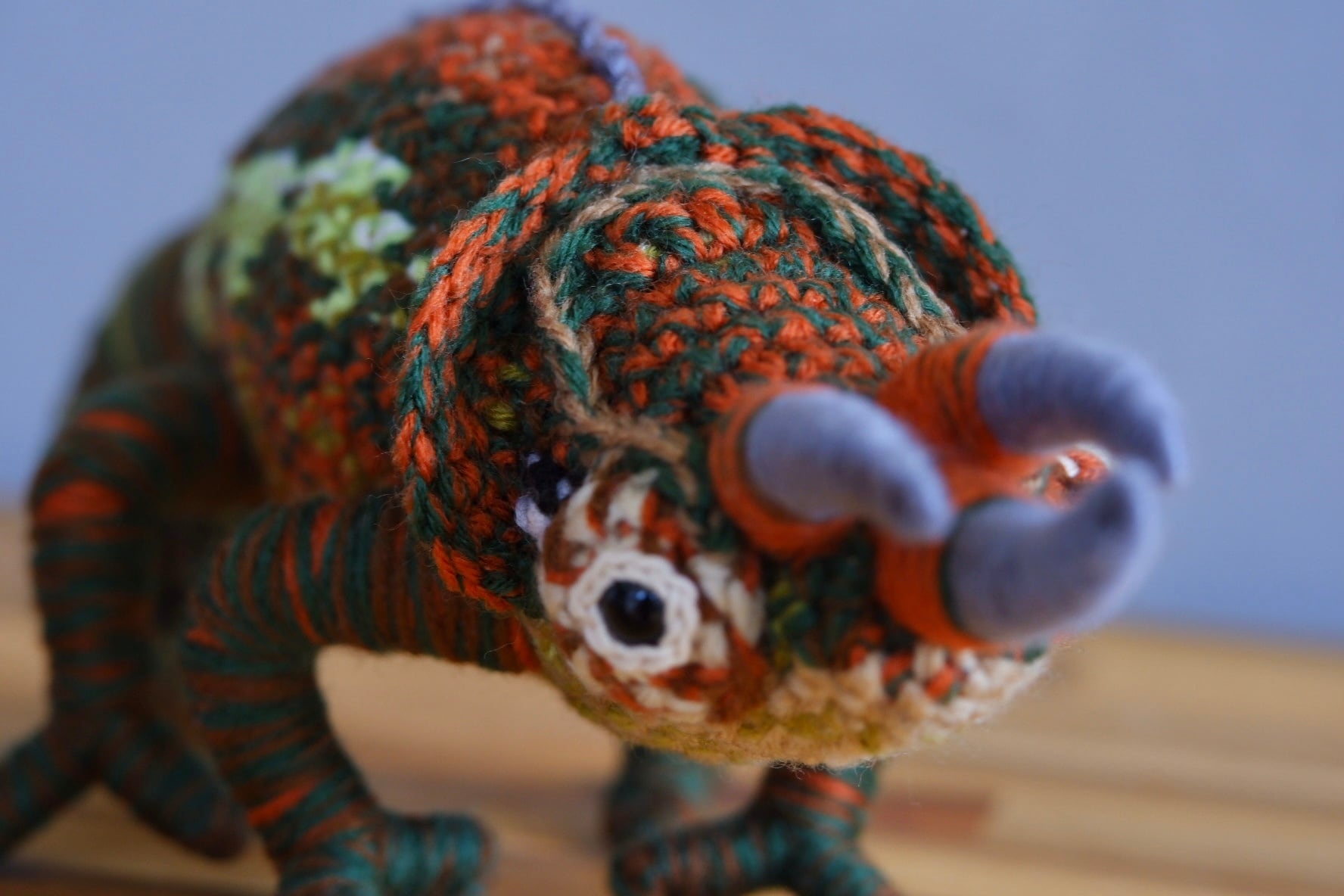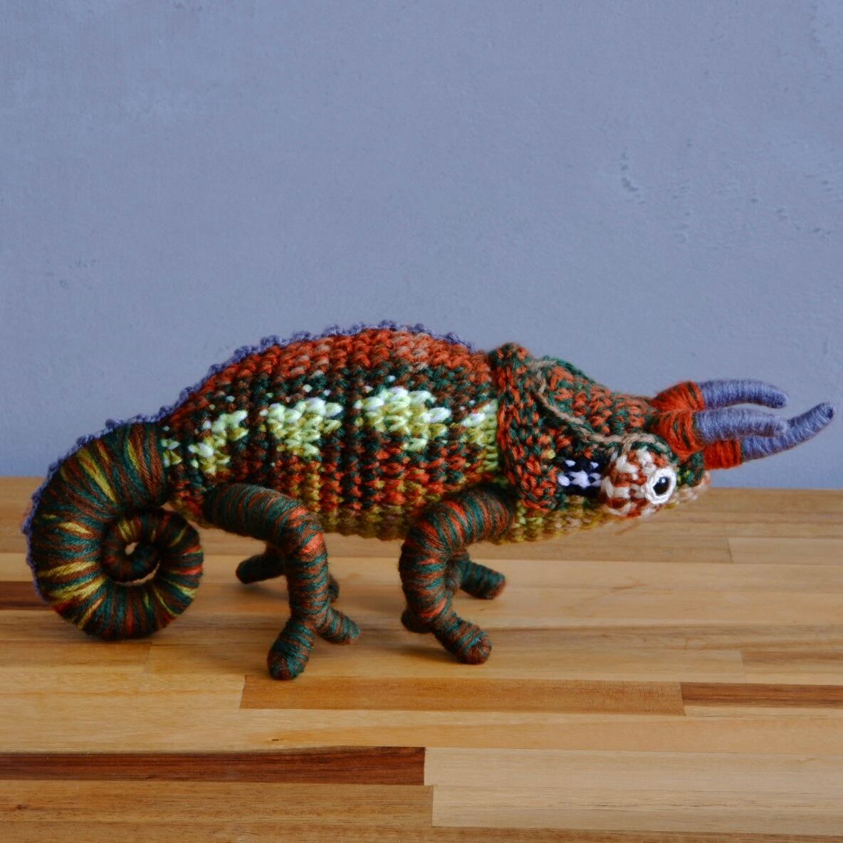 ワーナーカメレオン♂ Trioceros werneriのあみぐるみです。